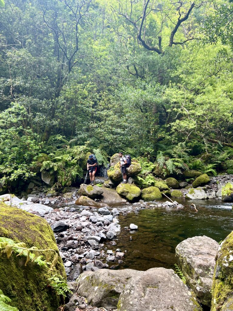 À savoir : sur cette étape, aucun point d’eau potable sur la route. Vous croiserez pourtant pas mal de levadas, ces petits canaux d’irrigation creusés à flanc de montagne, qui transportent l’eau des hauts plateaux vers les villages. Attention, cette eau sert à l’irrigation, donc évitez d’y tremper vos chaussures ou de la polluer. En revanche, avec un filtre, il est tout à fait possible de se réapprovisionner dans les courts d’eau.